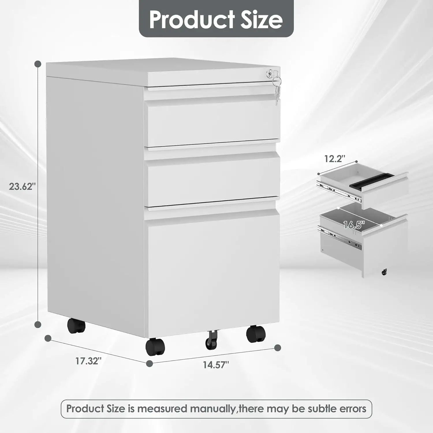 Über diesen Artikel 【Hochwertiges Material, umweltfreundliche Oberfläche】: Komplett verstärkt mit hochfestem kaltgewalztem Stahlrahmen, solide und stabil. Elektrostatische Epoxid-Sprühbeschichtung ohne Phosphor, dadurch sehr robust und unempfindlich gegen Korrosion und Rost, ideal für den Langzeitgebrauch. 【Verriegelungssystem】 Dieser Aktenschrank mit 3 Schubladen passt unter die meisten Schreibtische, sorgt für zusätzliche Sicherheit in Ihrem Zuhause oder Büro und ist mit zwei Schlüsseln ausgestattet. Er kann Ihnen helfen, Ihre Wertsachen und Dokumente sicher aufzubewahren. 【Hochleistungsrollen】 Mit fünf robusten Rollen, 2 davon feststellbar für mehr Stabilität und der mittleren Rolle vorne, um ein Umkippen zu verhindern. 【Erfinden Sie Ihren Arbeitsplatz neu】 Verstellbare Schubladenteiler halten Aktenordner in Ordnung; Hängeregistraturschublade für A4, F4, Letter und Legal; Hält Ihre Schublade sauber und ordentlich. Das abnehmbare, lässige Design sorgt für mehr Ordnung in Ihrem abschließbaren Schrank und zum Abheften wichtiger Dokumente für eine kompakte Aufbewahrungslösung. 【Spezifikationen und Service】: Größe ist 17,32" T x 14,96" B x 23,62" H. Komplett montiert, außer den Rollen. Sollten Sie ein Montage- oder Qualitätsproblem haben, wird unser freundliches Kundenserviceteam Ihnen innerhalb von 24 Stunden antworten.