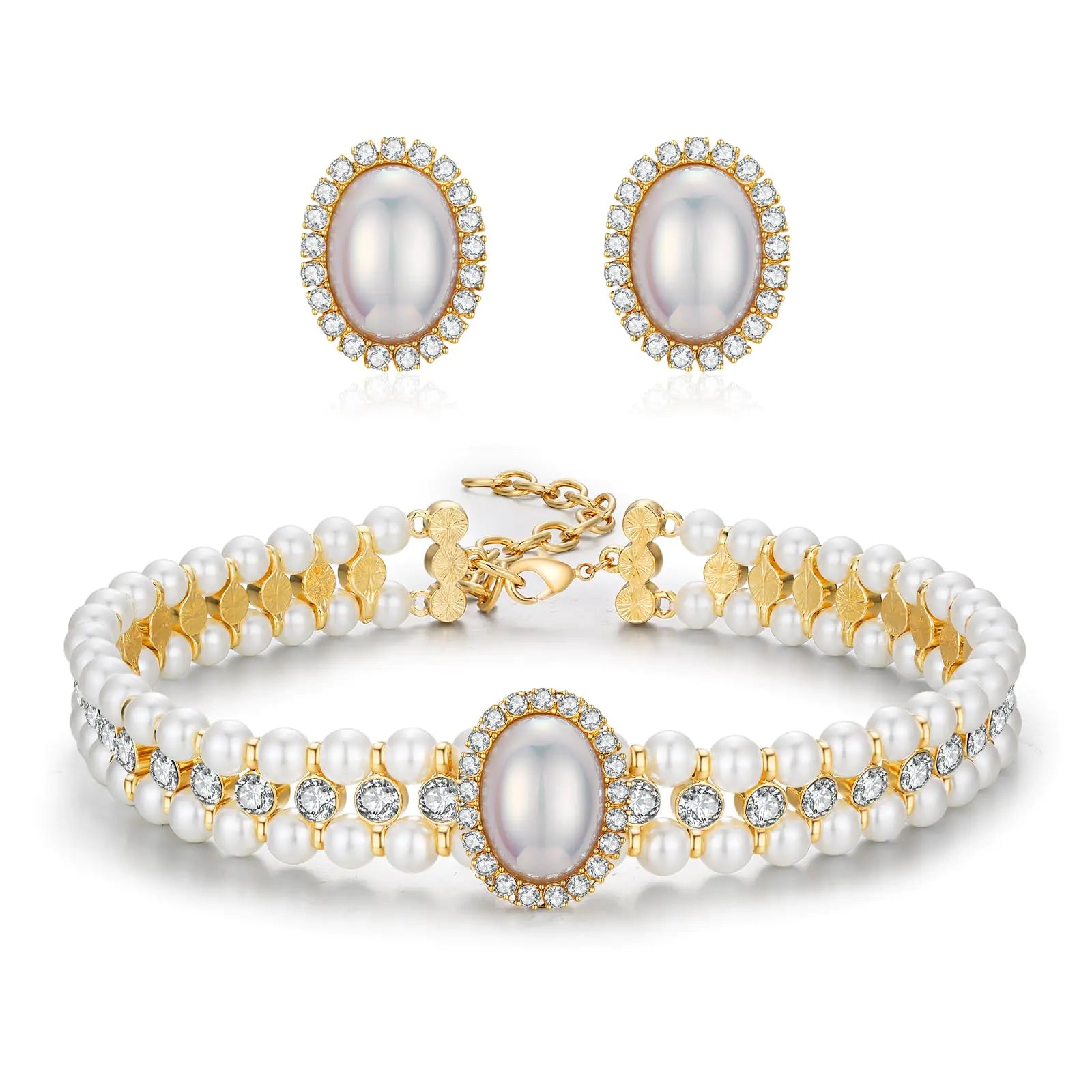 [KLASSISCHES DESIGN & HANDGEFERTIGT: Dieses klassische Schmuckset ist mit vielen Perlen und Strasssteinen gefertigt. Es kombiniert auf perfekte Weise die Noblesse von Perlen und die Pracht von Diamanten, wodurch dieses Schmuckset nicht nur klassisch, sondern auch modisch ist. Und um es noch perfekter zu machen, wird jedes Detail sorgfältig von unseren Juwelieren gefertigt. MATERIAL: Das Hochzeitsschmuckset besteht aus einer Zinklegierung, verziert mit Kunstperlen und Strasssteinen. Es ist hochglanzpoliert und funkelt wie ein Diamant. GRÖSSE DES PERLENKETTEN-SETS: Umfang der Halskette 31 cm, Verlängerungskette 9 cm. Die Ohrstecker sind oval, 2,1 cm lang und 1,8 cm breit. HOCHWERTIGE VERARBEITUNG: Das elegante Perlenketten-Set und die Ohrringe sind leicht zu tragen. Keine Stimulation der Haut, keine Allergien, bleifrei, nickelfrei. WAS SIE BEKOMMEN: 1 Halskette und 1 Paar Ohrringe, gut verpackt; kann ein tolles Geschenk für Ihre Lieben sein.]
