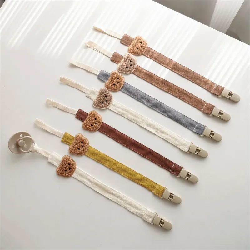 Protect your baby's pacifier from dirt and germs with our adorable bear pacifier chain clip. This stylish and functional accessory clips securely to clothing, preventing pacifiers from falling to the ground. The soft, chewable bear design is perfect for soothing teething gums, making it a must-have for any parent.