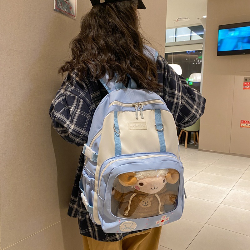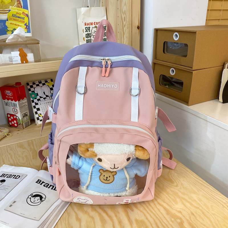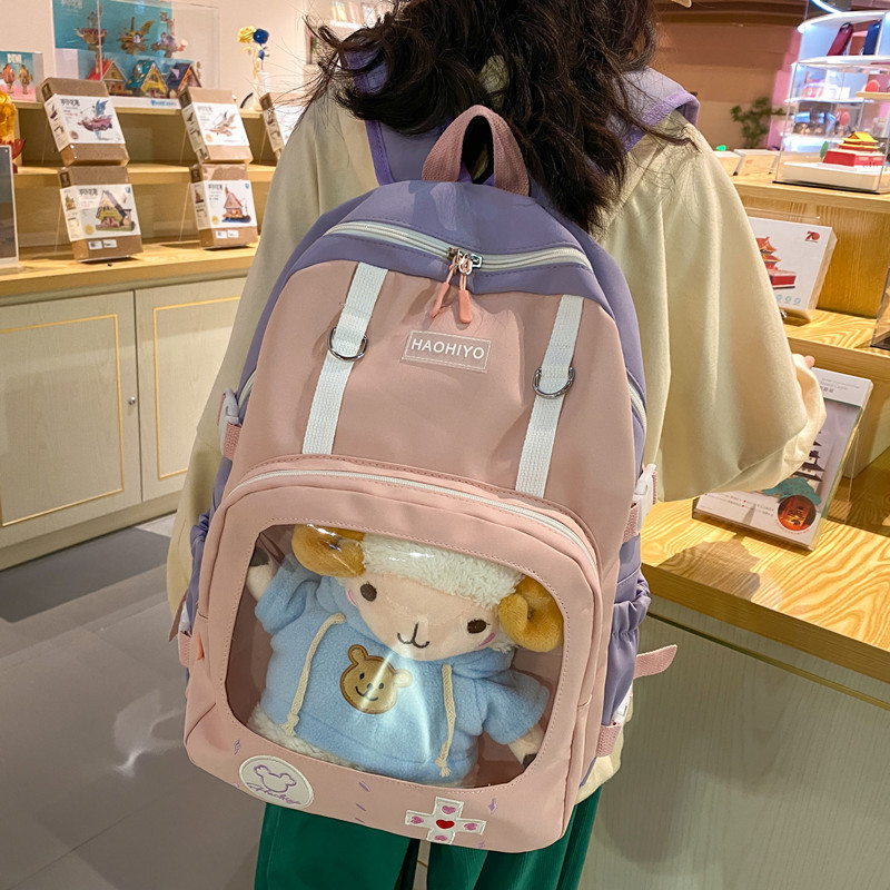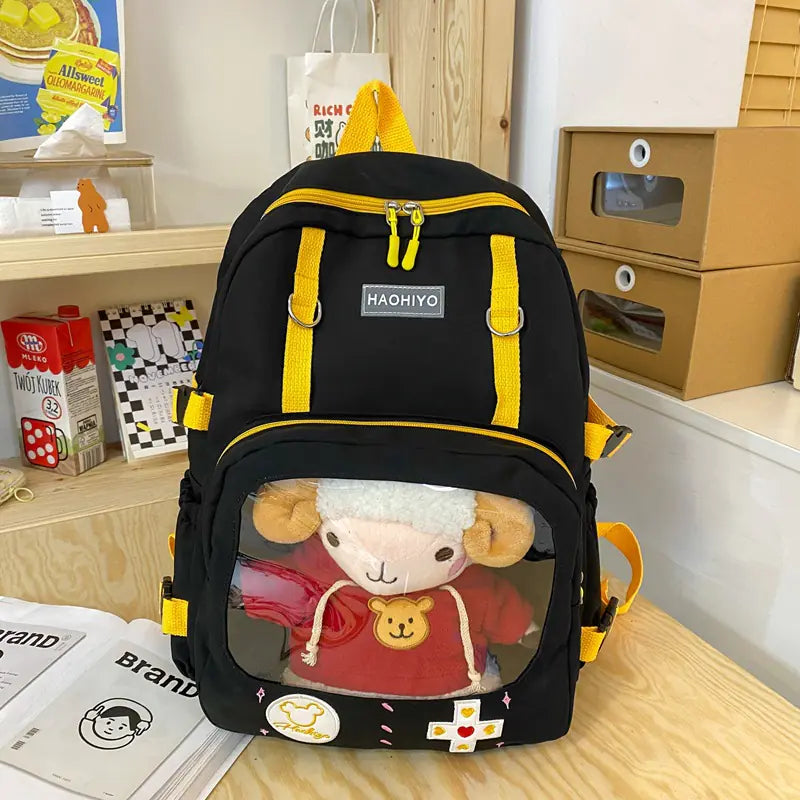 Erhältlich in vier leuchtenden Farbkombinationen – Schwarz mit Gelb, Pink mit Blau, Weiß mit Blau und Pink mit Lila – ist diese Tasche nicht nur ein Rucksack, sondern ein modisches Accessoire, das Ihren frischen und süßen Stil ergänzt.