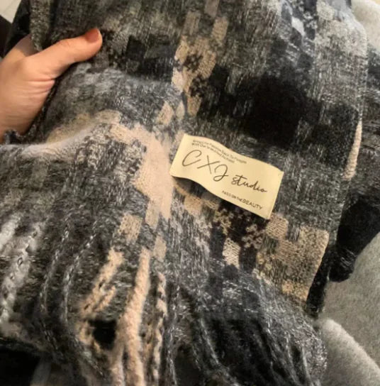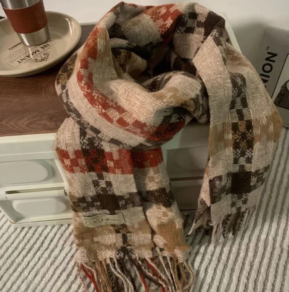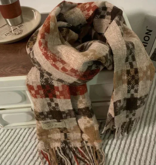 Das einzigartige Farbblock- und Karodesign macht diesen Schal zu einer vielseitigen Ergänzung Ihrer Garderobe, perfekt für legere Ausflüge und formellere Anlässe. Kombinieren Sie ihn mit Ihrem Lieblingsmantel oder -pullover, um Ihren Look aufzuwerten und die Kälte fernzuhalten.
