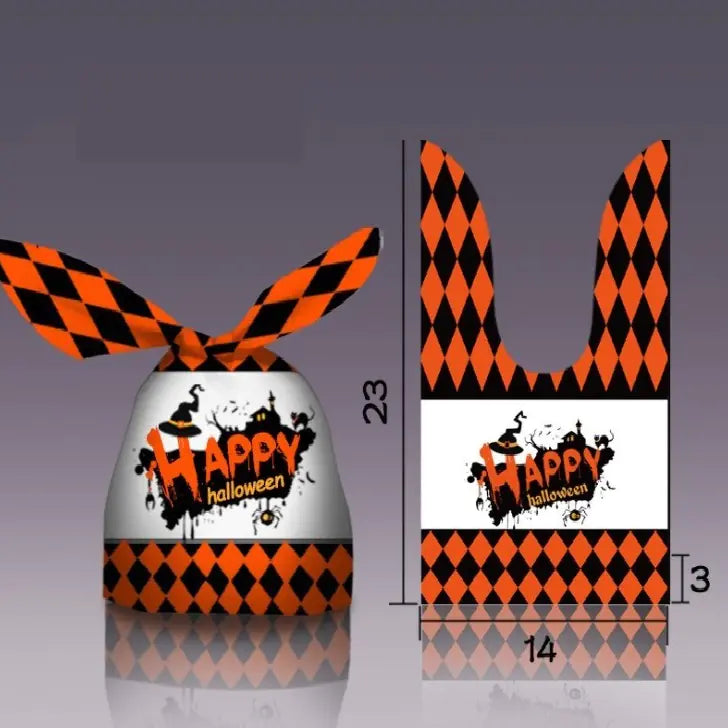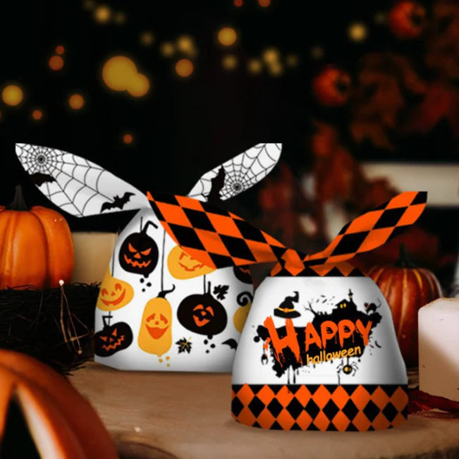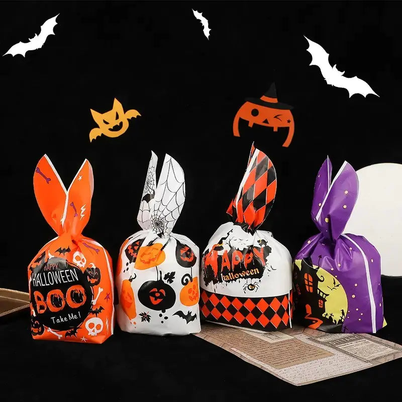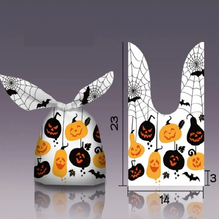 Get ready for a spooktacular Halloween with our 50pcs Halloween Candy Packaging Bags! These adorable bags feature charming rabbit ears and a festive pumpkin design, making them the perfect choice for packaging treats, snacks, and baked goods for your little ghouls and goblins.