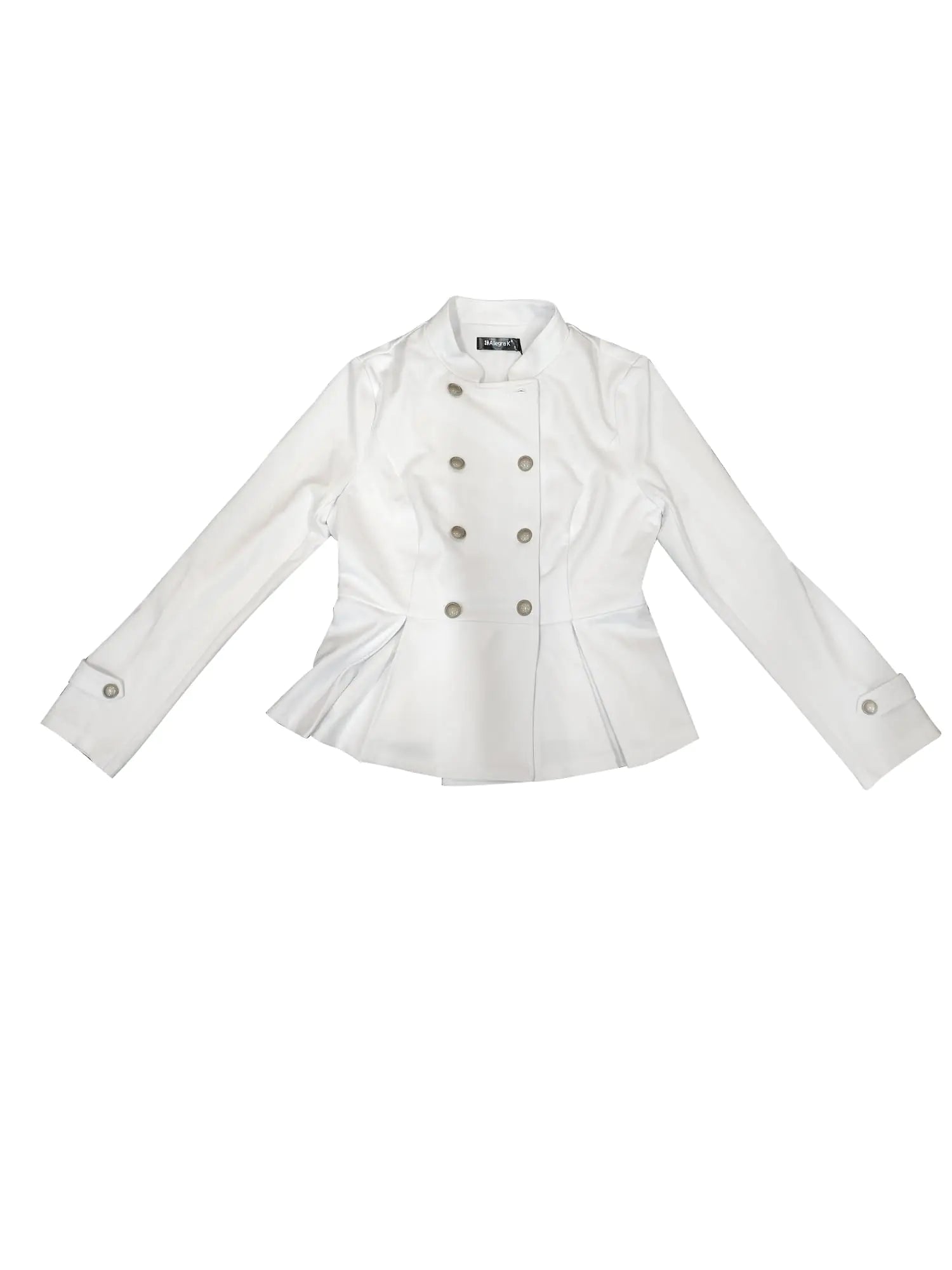 [Fabric Details: 95% Polyester 5% Spandex; Machine Wash Cold with Like Colors MODEL SHOW: Regular Fit. Wear in size X-Small This classic gothic jacket is made up of several design points: peplum ruffles hem notched lapel collar button decor double breasted cinched waist slightly stretch Suit for fall/winter and for many occasions such as Causal Wear Business Office Work Coffee Shop Daily Date Gothic Cosplay Party etc Made of soft fabric this elegant business casual blazer can pair with the pants jeans boots etc for any occasions]