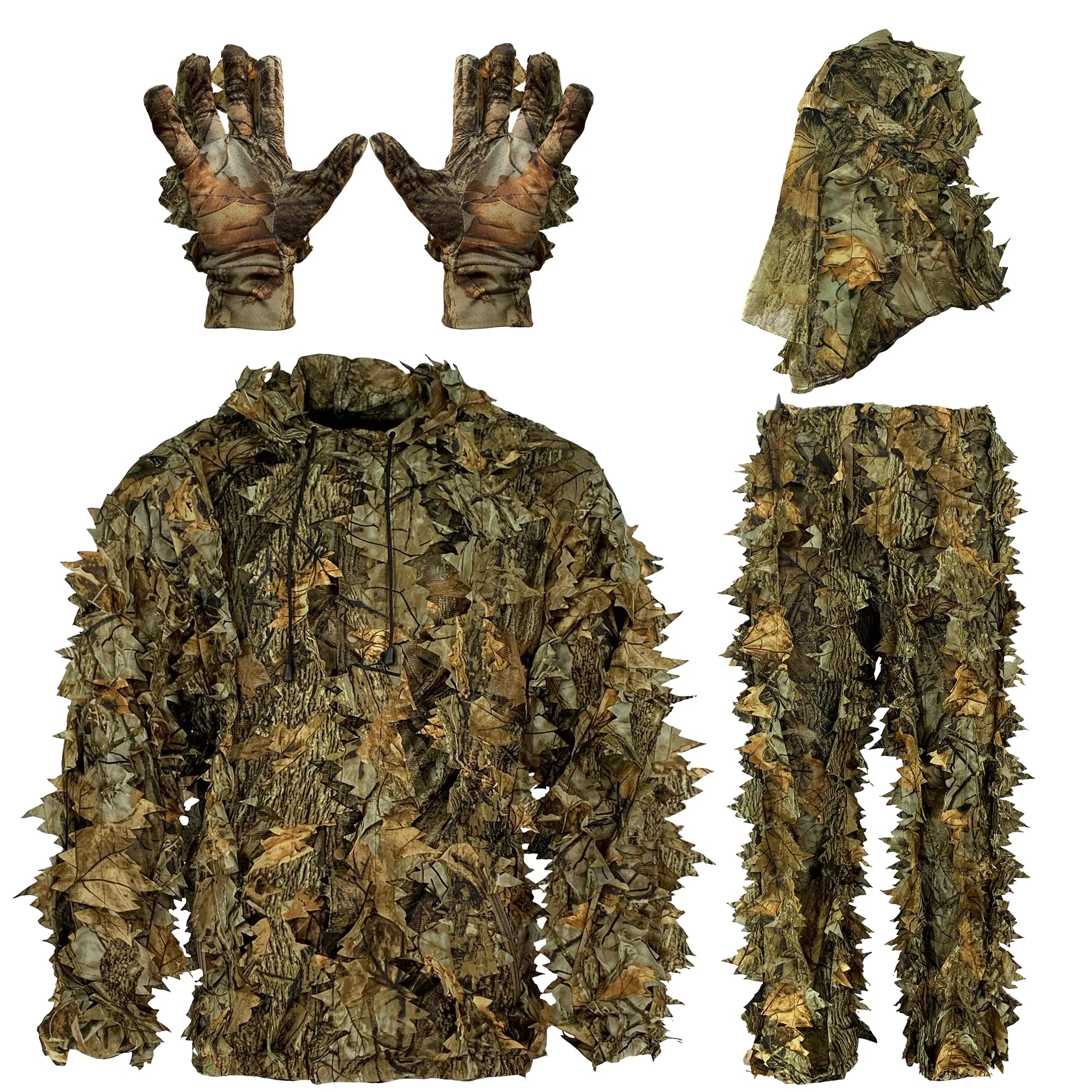 DescriptionAyin Ghillie Suit 3D Leafy Camo Hunting Suits Woodland Gilly Suits Hooded Gillies Suits for Adults or Youth Leaf Camouflage Hunting Suits for Hunting Shooting AirsoftSoftest and Quietest in the Industry - AYIN ghillie 3D leafy hunting suits are made from premium 100% polyester They are ultra-quite breathable and comfortable for all day wear. The material is shaped along the edges for a 3D leafy design so it makes for excellent camouflage.Secure Closures - Our jacket snap design is easy to open and stays closed so no more worries about noisy kinking or stuck zippers. Our elastic and drawstring adjustable waistband fits your body better and elastic band at your wrists and ankles makes it easy to roll up sleeves and or keep your suit in place over your boots and gloves without it riding up on you during any kind of movement or stalking. Attached Hood with Draw cord for convenience and concealment.Multi-Purpose – AYIN Ghillie suits are designed for adult or youth hunting airsoft shooting wildlife photography woodland or Halloween costume play. Great gifts for Halloween Christmas and New Year.3 Sizes to Choose From – Ayin Ghillie 3D leafy suits are designed to be worn on top of heavy outerwear or lightweight shirt and pants. Size S/M Chest 52” Sleeve 33” Waist 24”-36”. Size L/XL Chest 58” Sleeve 35” Waist 30”-44”. Size 2XL/3XL Chest 62” Sleeve 36” Waist 34”-53”. Our recommendation is to choose the normal size you wear. This will give you the option of wearing just a shirt and pants underneath our 3D leafy suit or bulky layers.Two Sided Printing – Our double sided camouflage design gives our 3D leafy suit the ultimate in realistic concealment. Allowing you to blend in to your surroundings with ease.
