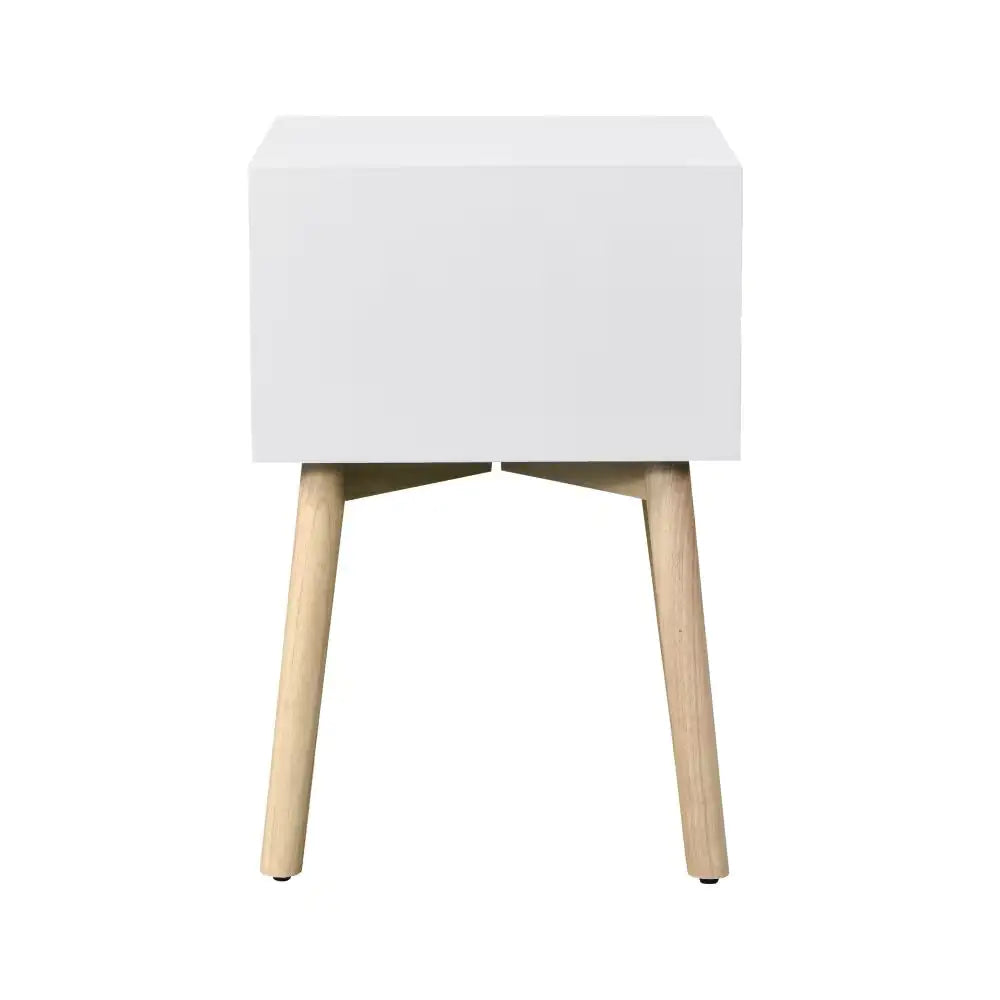 Product name: Side Table,Bedside Table with 2 Drawers and Rubber Wood Legs, Mid-Century Modern Storage Cabinet for Bedroom Living Room, White