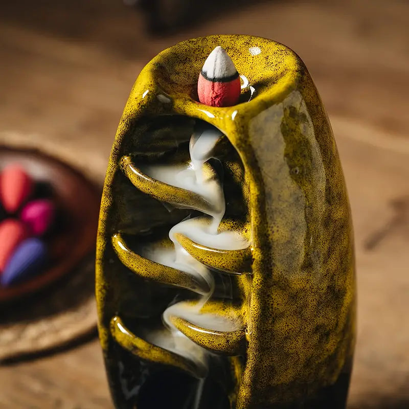 Transform your living space into a serene retreat with our Ceramic Backflow Incense Holder. This stunning incense burner not only serves as a functional accessory but also as a captivating piece of decor that adds charm to any room.
