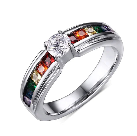 Elevate your jewelry collection with this exquisite ring that embodies both style and quality. Perfect as a gift for a loved one or a well-deserved treat for yourself, the Colorful Inlaid Zircon Titanium Steel Color Ring is more than just an accessory—it's a celebration of individuality.