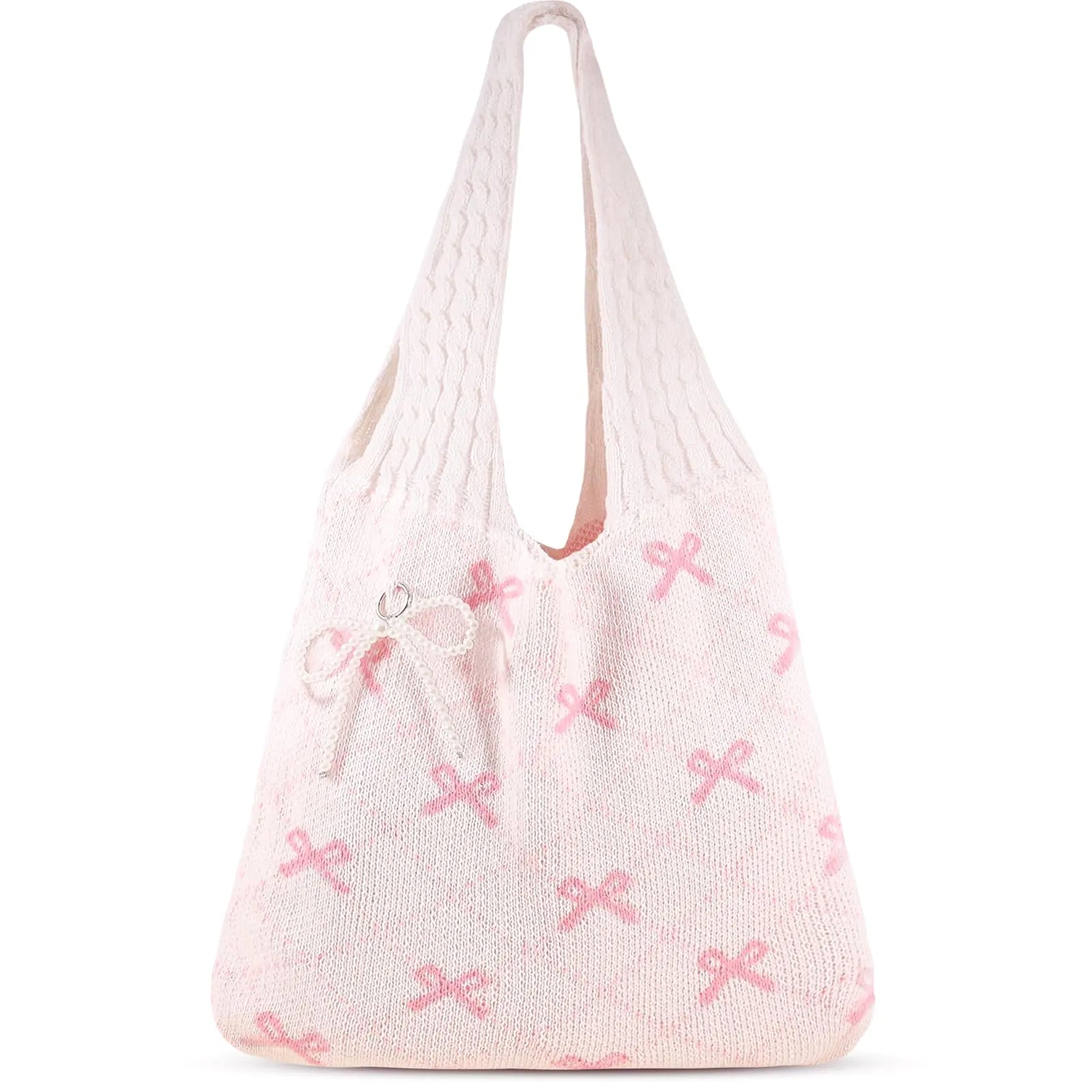 DescriptionCoquette Crochet Tote Bag Cute Pink Tote Bag with Bag Charms Keychain Aesthetic Shoulder Bag Handbags for Women Girls
