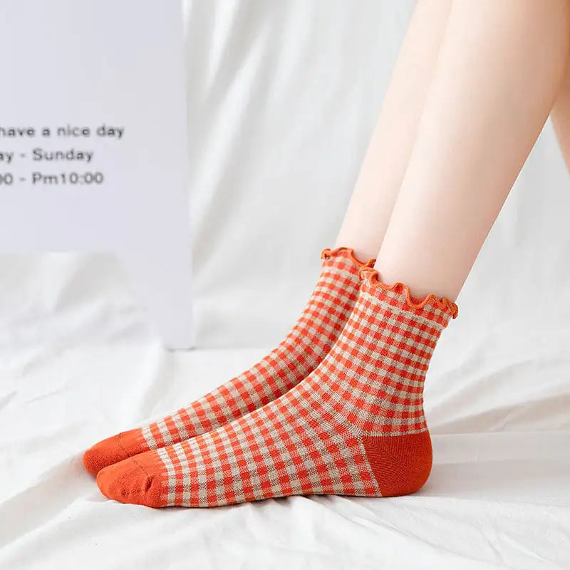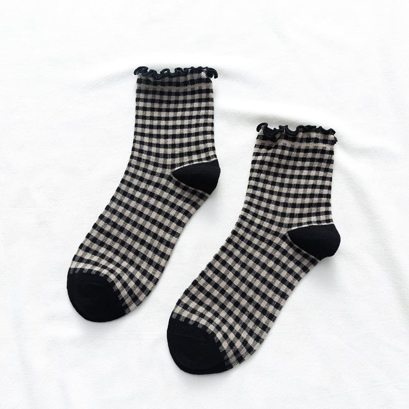 Elevate your sock game with our Women's Socks With Plaid In Cotton And Wood Ears – where comfort meets style!
