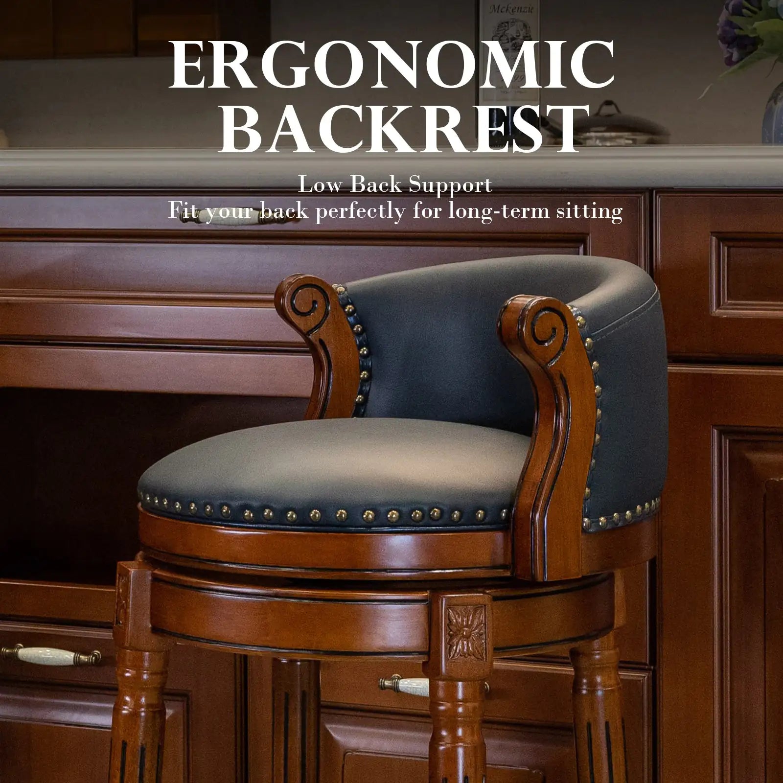 Product Name: Seat Height 29.5 Inch Cowhide Wooden Bar Stool, 360 Degree Swivel Bar Height Chair with Backrest, Suitable for Home Kitchen Counters