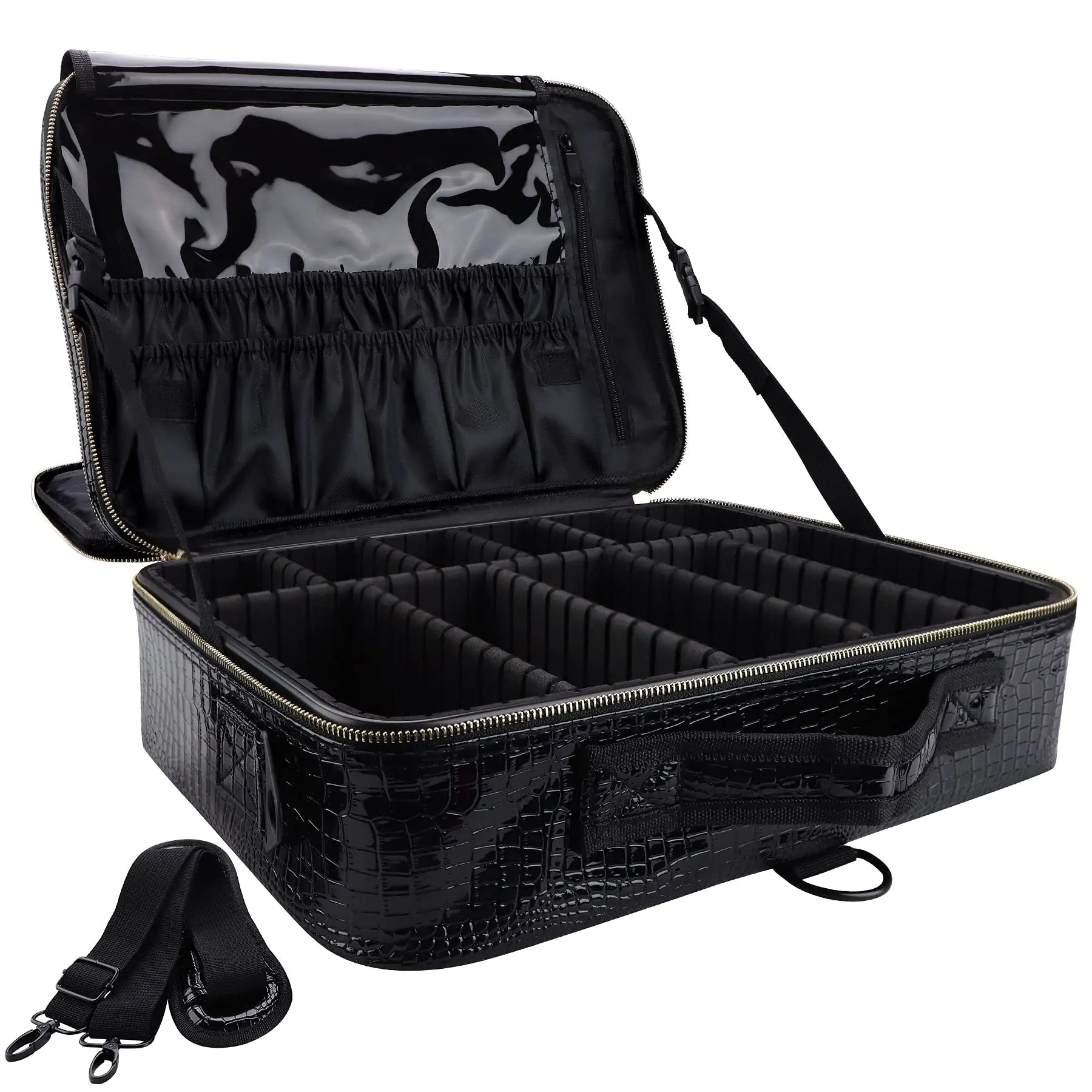 [💗【UNIQUE MAKEUP BAG】This makeup artist travel organizer is made of waterproof PU leather with crocodile pattern. Features durable to use and easy to clean. The double golden zip is durable and smooth to use. 💗【EXTRA LARGE MAKEUP CASE】This make up bag sizes in 16 × 5.5 × 11.4 in(41 × 14 × 29 cm). 3 layers designed with large capacity provide plenty of space for your makeup and cosmetic accessories like lipstick makeup brushes eyeshadow makeup palettes skincare products etc. All your cosmetics can be well organized for easy access. 💗【SMART DIY DESIGN】Built in adjustable dividers and supporting strap. You can design the internal compartments by adjusting padded dividers to fit different cosmetics and keep them perfectly separated and organized without shifting places. 💗【MULTI-WAYS TO CARRY】This makeup travel case is coming with a shoulder strap which allows it to make it as a shoulder bag or backpack. With a band on the backside unable to attach the large makeup organizer to the trolley case. Perfect for travel or business trip. 💗【PERFECT GIFT IDEA】OEWOER provides you with premium quality makeup storage box is a pretty outlook and excellent workmanship which makes it a wonderful gift idea for family friends colleagues or anyone you love.]