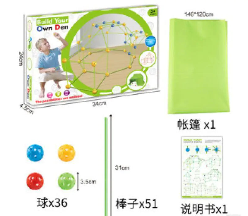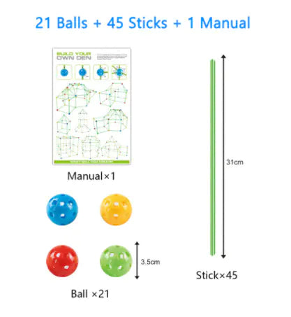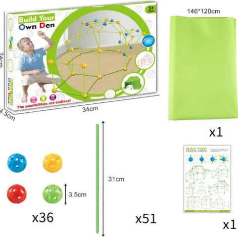 Each set comes with detailed instructions, making it easy for kids to start building right away. Whether you choose our combination of 36 capsules and 51 tubes or opt for the more extensive set with 45 balls and 75 tubes, every option is crafted for fun. Plus, you can add a tent canvas for an extra cost, creating the perfect play space for indoor and outdoor adventures!