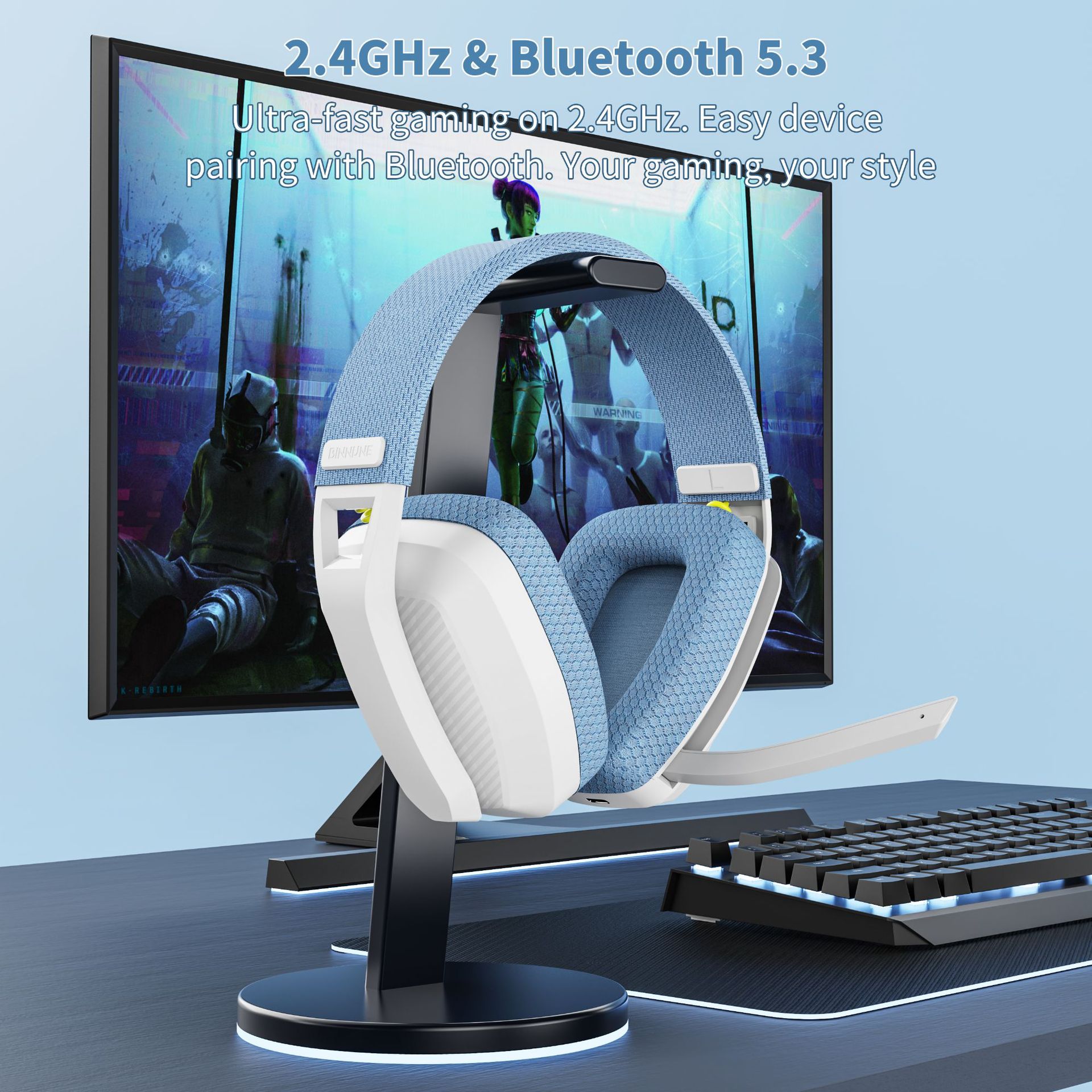 Elevate your gaming experience with our cutting-edge E-sports headset. Designed for serious gamers, this head-mounted headset offers both USB and Bluetooth connectivity, allowing you to enjoy your favorite games without the hassle of tangled wires. With its wireless capabilities, you can move freely while staying connected to your gaming device. The built-in microphone ensures crystal-clear communication with your teammates, making it easier than ever to strategize and coordinate during intense gaming sessions. The headset features a frequency response range of 20Hz-20KHz, delivering immersive sound that enhances your gaming experience. Crafted from soft mesh material, the ear cups provide comfort for long hours of gameplay, allowing you to stay focused without discomfort. Available in three stylish colors—blue, gray, and black—there's a perfect option for every gamer’s aesthetic. Check out the stunning visuals of our headset below: