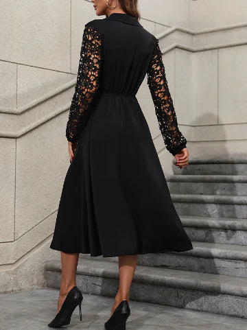 Available in sizes S to XL, this elegant black dress is versatile enough to be dressed up or down. Whether you're attending a formal event or a casual gathering, you'll look chic and sophisticated.