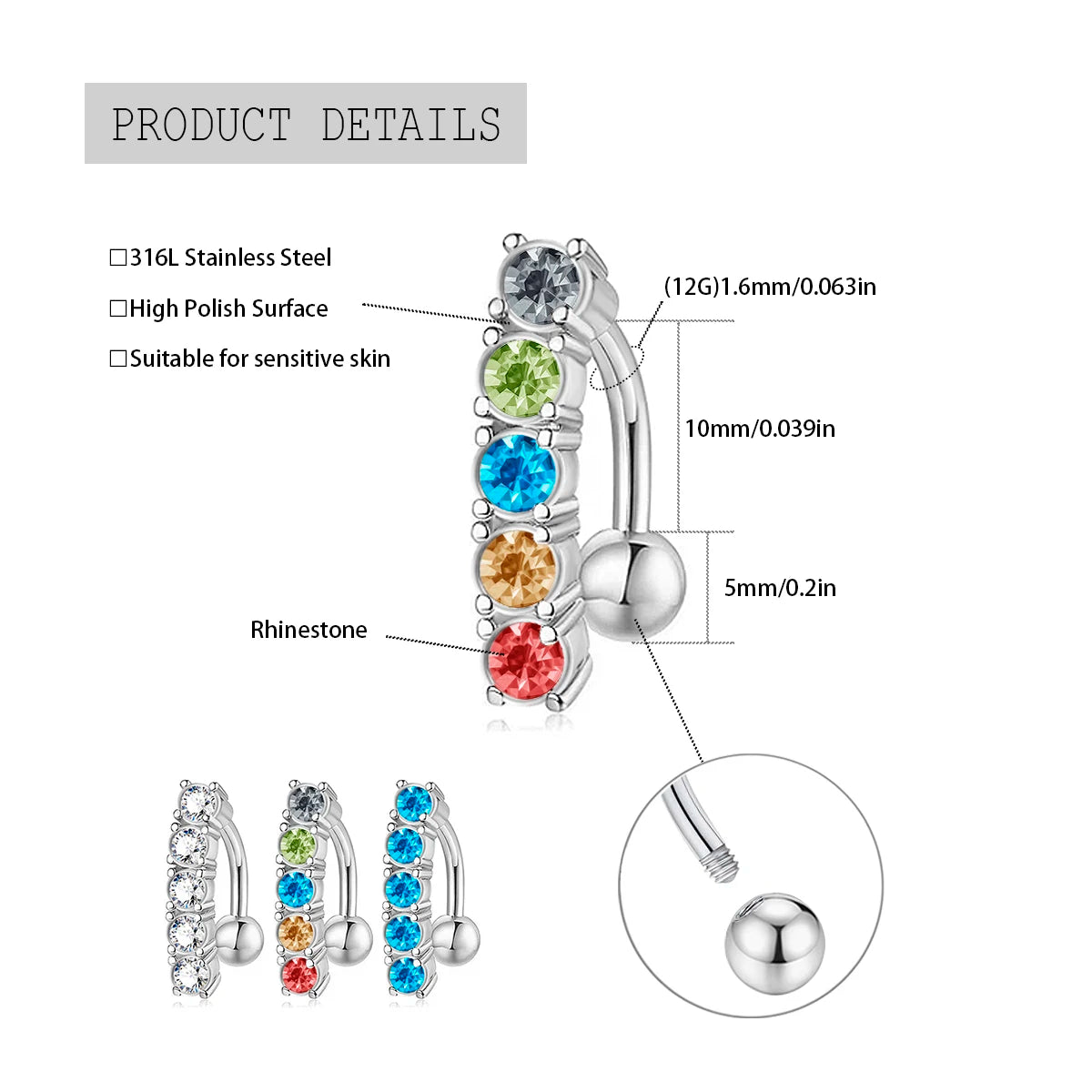 Each navel ring is adorned with dazzling crystals that catch the light beautifully, enhancing your natural beauty and making a bold statement. The unique punk-inspired design adds a touch of edge, perfect for those who dare to be different.
