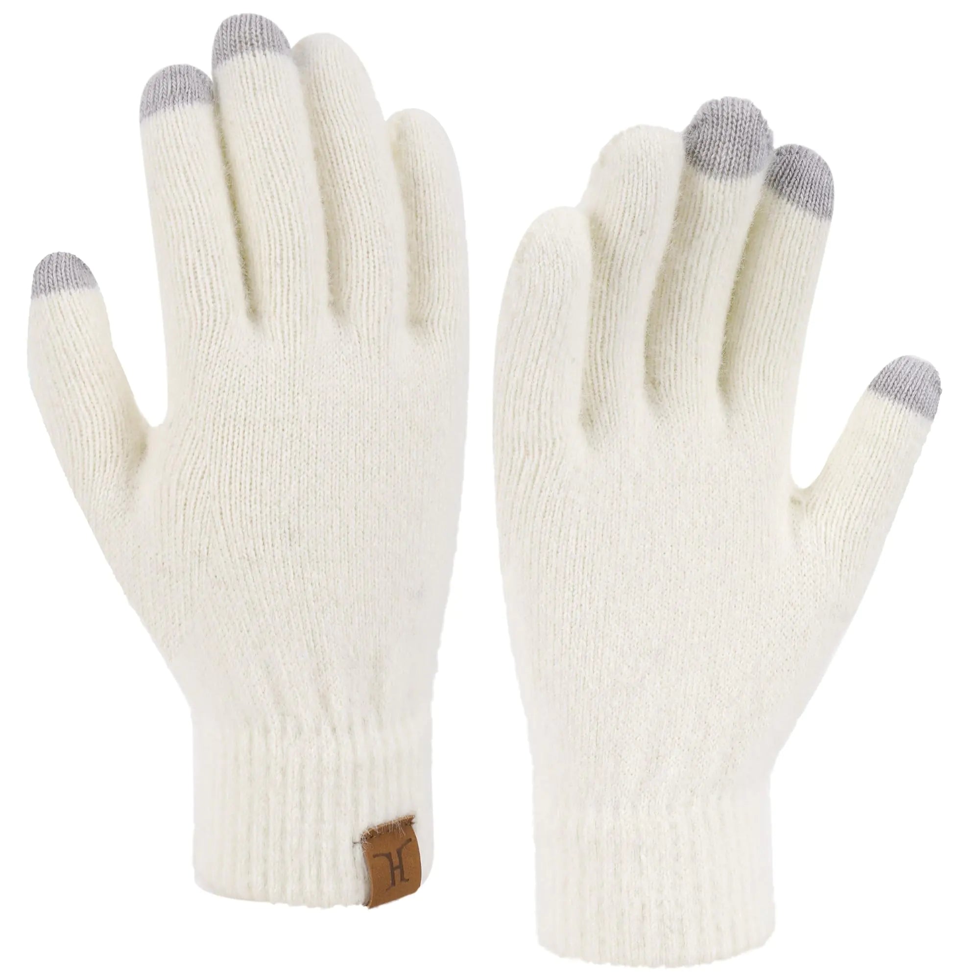 [Premium Material: Our womens winter gloves are made from 50% acrylic and 50% nylon with exceptional craftsmanship ensuring they are comfortable soft and durable. The knit gloves have a simple yet stylish appearance making them a must-have winter accessory. Touchscreen Function: Our uniquely designed thermal gloves for women feature a practical 3-finger touchscreen capability (thumb index and middle fingers) ensuring you can type text write or drive seamlessly without removing your gloves even in the coldest winter. Simply ensure your fingertips touch the top of the gloves for optimal gloves with touchscreen fingers performance. Elastic Cuff: The thickened cuffs of these women winter gloves are snug and stretchy providing excellent wind resistance to keep your hands warm during cold winter days. The delicate leather logo on the cuff adds a touch of sophistication to these cold weather gloves. One Size Fits Most: Non-stretched size of 22cm/8.66inch (length) x 8cm/3.15inch (palm width). These winter gloves for women offer exceptional elasticity to perfectly fit your hands. Ideal for most women and teenage girls they are perfect for running skating skiing walking the dog or other outdoor activities in the cold winter. Gifts for Women: These touch screen gloves women will love are designed with striking colors making them both practical and fashionable perfect for pairing with any stylish outfit. They make an excellent gift for your loved ones family friends sisters or colleagues on Halloween Thanksgiving Christmas New Year or for everyday use. Keep stylish and warm this cold winter with these ideal gloves.]