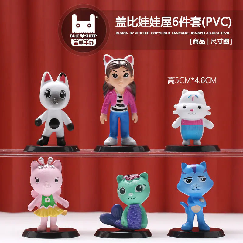 Step into the enchanting world of Gabby's Dollhouse with this delightful 6-piece set that brings your child's favorite characters to life! Perfectly crafted from high-quality PVC, each figure stands at a charming size of 4.8*5cm, making them ideal for tiny hands to hold and play with.
