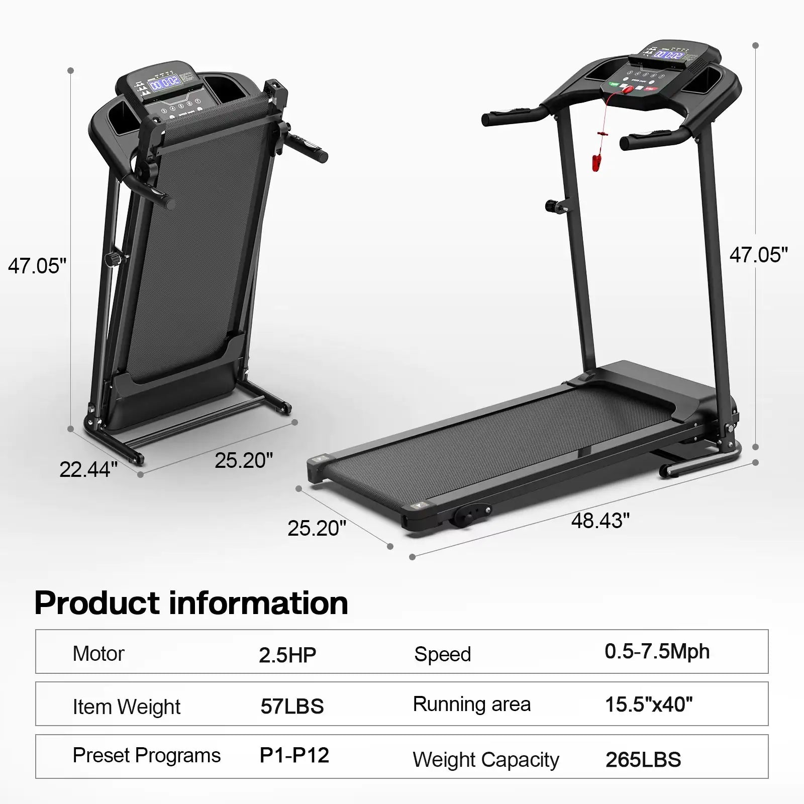 【Spacious Running Area】Enjoy the spacious 40" x 15.5" running belt, providing you and your family with a safe and unrestricted exercise space. The 2.5 HP silent motor runs smoothly for a more comfortable workout experience for you, your family, and even your pets. Provide a quiet environment for exercise