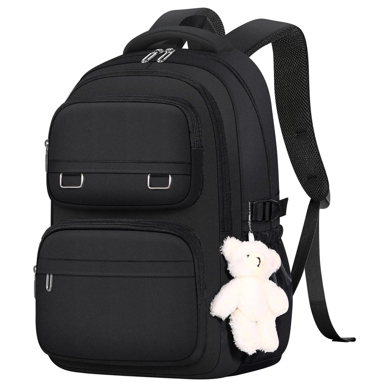 [【Good Material】The backpack for school is made of ultra-lightweight and high-density wear-resistant nylon which can effectively protect your essentials. So you can be confident that this school bookbag will last for years. With smooth zippers and metal texture pulls this cute backpack will be the perfect choice for any student and commuter. 【Large Capacity】Size of this laptop backpack is 12.59\\L*8.3 "W*17.7\\H; Weight: 1.4 lbs. It can hold 14-15.6 inch laptop. The college backpack has 1 * main pocket with laptop compartment 4 * front pockets 1 * back zipper pocket and 2 * side pockets with adjustable buckles. Multiple pockets are designed to categorize the items well which can keep the items inside organized and find what you need at once. Age:over 6 years old. "【Practical Design】The aesthetic backpack for school is designed with luggage tie-down straps. You can attach it to your suitcase for easy transportation reducing the burden on your shoulders and back when traveling. The hidden anti-theft pocket on the back is designed to fit snugly against your body. You can hold your valuables such as your passport cell phone and money. Nobody can get into it when youre tired or sleepy." 【Safety & Comfort】Soft foam decompression top handle is easy to grip. The shoulder straps can be adjusted to fit your height and body type keeping the shoulder straps securely in place. Multi-layer foam shoulder straps can protect your spine and reduce the load. Our classic causal backpacks are perfect for teens girls and boys women and men. "【Multifunction】This kids backpack for school is trendy and suitable for casual uses. It meets most of your needs and easily matches your clothes suitable for traveling working shopping college school sports and picnic. This daypack also comes with a cute bear pendant. So they are perfect present for birthdays graduations Childrens Day Mothers Day Fathers Day Thanksgiving Christmas etc."]