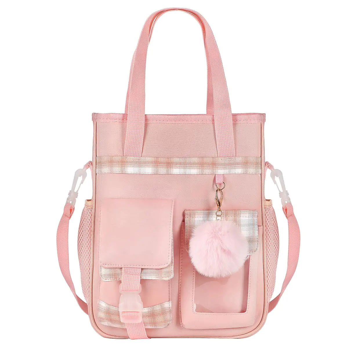[Size: 33*26*12cm/ 12.9*12.2*4.7inch it will be a great complement match to buy with the backpack. . Functional: Comes with a detachable shoulder strap the casual school messenger bag can be wear as a tote bag shoulder bag crossbody bag or handbag. Capacity: This bag is big enough to hold books lunch box cosmetics magazines and other daily items. Simple Style: With a cute furry ball decor the bag is neat design and lightweight to carry. Occasions: The casual tote bag is suitable for everyday use shopping travelling walking school and more. Recommend for kids over 6 years old.]