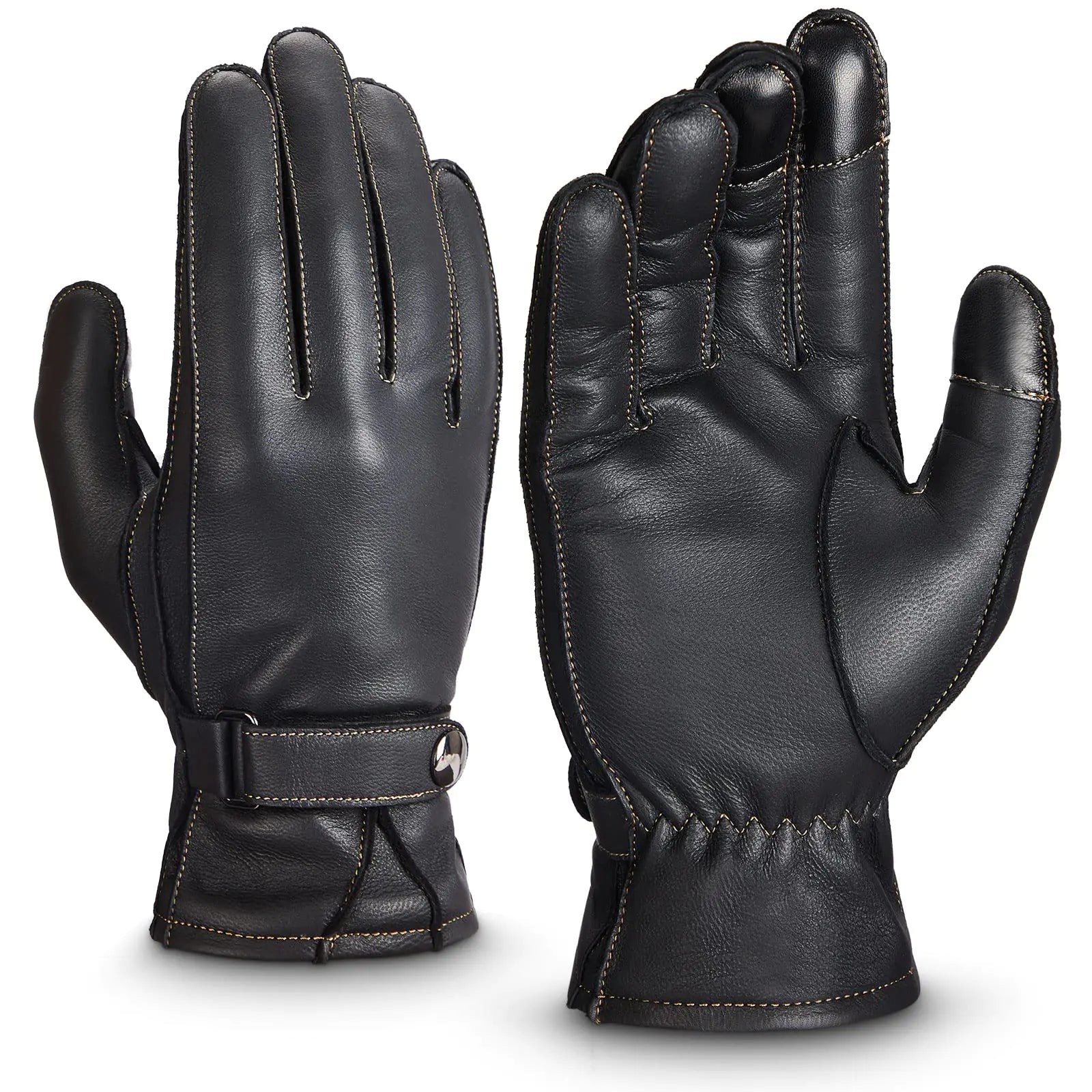 [Genuine Leather:KEMIMOTO Winter Gloves has soft lining and genuine leather outer ensure suppleness strength and comfort during use. Protect your hands from the freezing steering wheel/shift lever and provide flexible meanwhile Widely Use:Riding Winter Gloves is lightweight and flexible meet your need for car driving riding running cycling dressing and other outdoor activities Full Finger Touchscreen:Allow three fingers on your hand to work on your touchscreen phone. Make it easy to use your phone with gloves in winter Adjustable wrist design: The wrist has an elastic tightening design which is windproof and closer to the skin. It also has a button fastening design that can be adjusted according to personal size Fashion Look Design:Simple and delicate appearance let them easy to match your dress. Whether it’s Halloween dressing or daily outfits whether it’s street cool jackets or casual business suits they are a good partner]