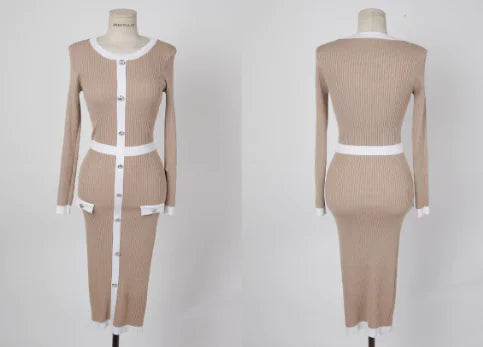 Embrace elegance with our stunning knitted dress designed for the autumn and winter seasons. This mid-length, figure-flattering piece is perfect for any occasion, providing both comfort and style.