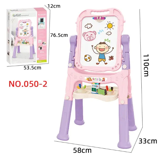 Measuring 57*11*43 cm, this writing board features a dual-sided design that allows children to draw, doodle, and practice writing on one side while enjoying a magnetic surface on the other. It’s an excellent tool for developing fine motor skills, hand-eye coordination, and imaginative play.