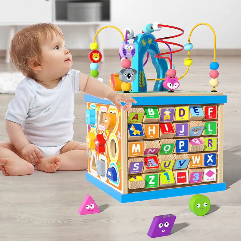 Measuring at a compact size of 30.5 x 23.5 x 3.5 cm, it’s perfect for little hands to explore and manipulate. The Scene Bead Intelligence Box features multiple variations including the Hexagon Multi-Functional Large Bead Winding and the Shape Matching Beaded Box, allowing your child to engage in various play scenarios that promote fine motor skills, shape recognition, and problem-solving abilities.