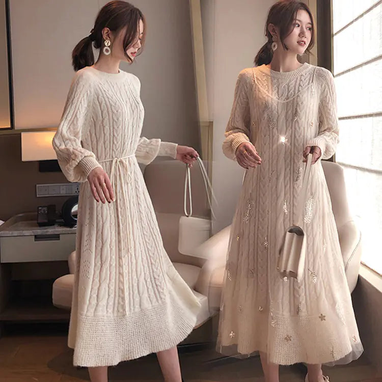 Embrace elegance this season with our stunning long sweater dress, designed to be the perfect blend of comfort and style. Crafted from a high-quality fabric blend, featuring 81%-90% acrylic, this dress is not only soft to the touch but also ensures warmth during the chilly autumn and winter months.