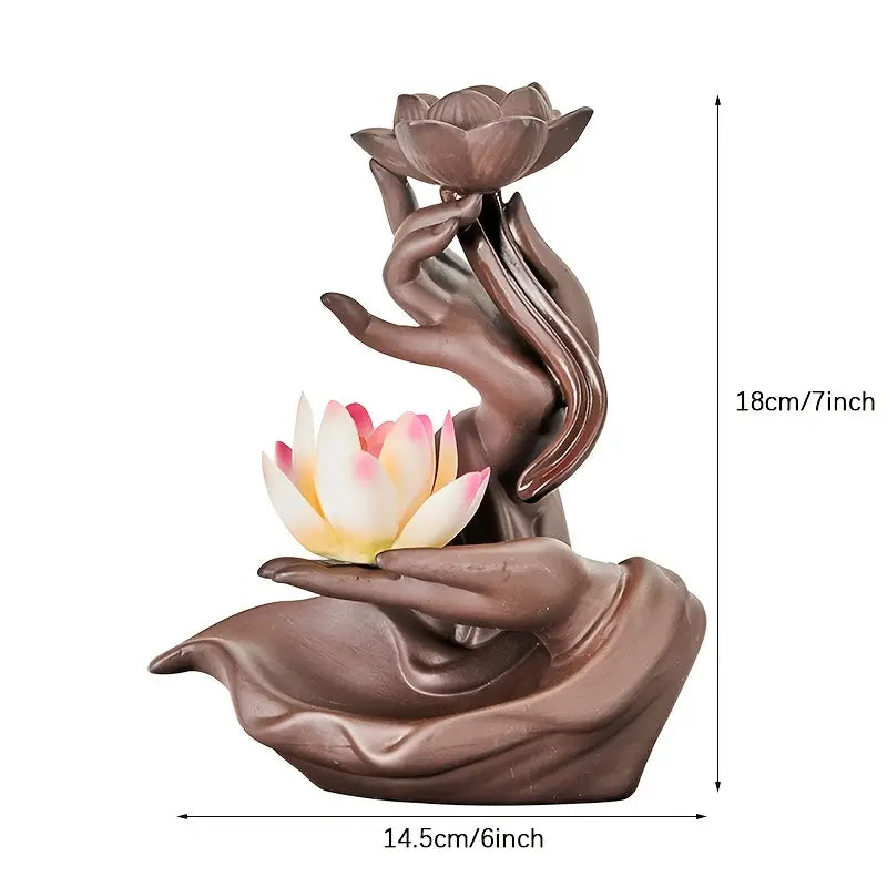 Immerse yourself in the calming scents of your favorite incense and let the Lotus Waterfall Incense Burner be the centerpiece of your relaxation ritual. Explore the images below to see the intricate details and beauty of this unique decor piece.
