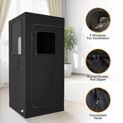 Designed for comfort, it includes a built-in pocket, transparent windows, a waterproof base, and a foldable frame for easy setup and storage. Perfect for detoxing, stress relief, and overall wellness, this sauna is your personal relaxation space anytime, anywhere.