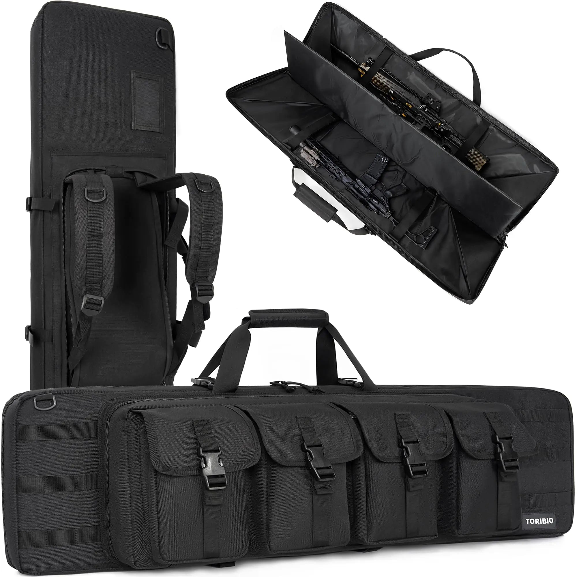 [Durable: Made of wear-resistant nylon material water resistant and dustproof. Black is stain-resistant and stylish yet sturdy and durable for extended use Spacious and Large Capacity: 36" x12". Can store all kinds of items you need: shotguns rifles pistols mags and ammunition etc. Protection: The padded long gun bag provides the best protection for your various types of guns during transportation. Durable double paracord zipper for easy access Multiple Pockets: The 4 front pockets are locked and can be quickly accessed to store mags and ammunition Easy to Transport and Carry: 2 carrying methods backpack and hand carry our tactical rifle bag allows you to carry it using the sturdy handle or two adjustable backpack straps]