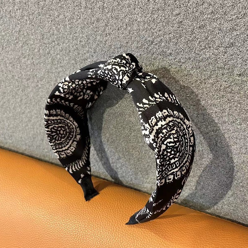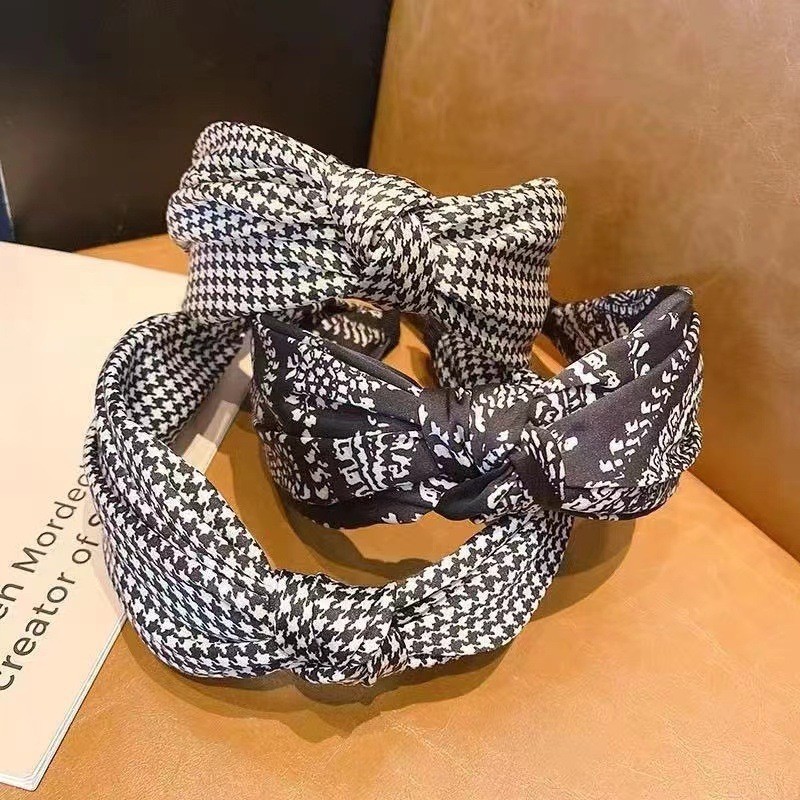 Elevate your hair game. This fashionable headband features a unique houndstooth print and a charming cashew flowers design, making it the perfect accessory for any outfit.